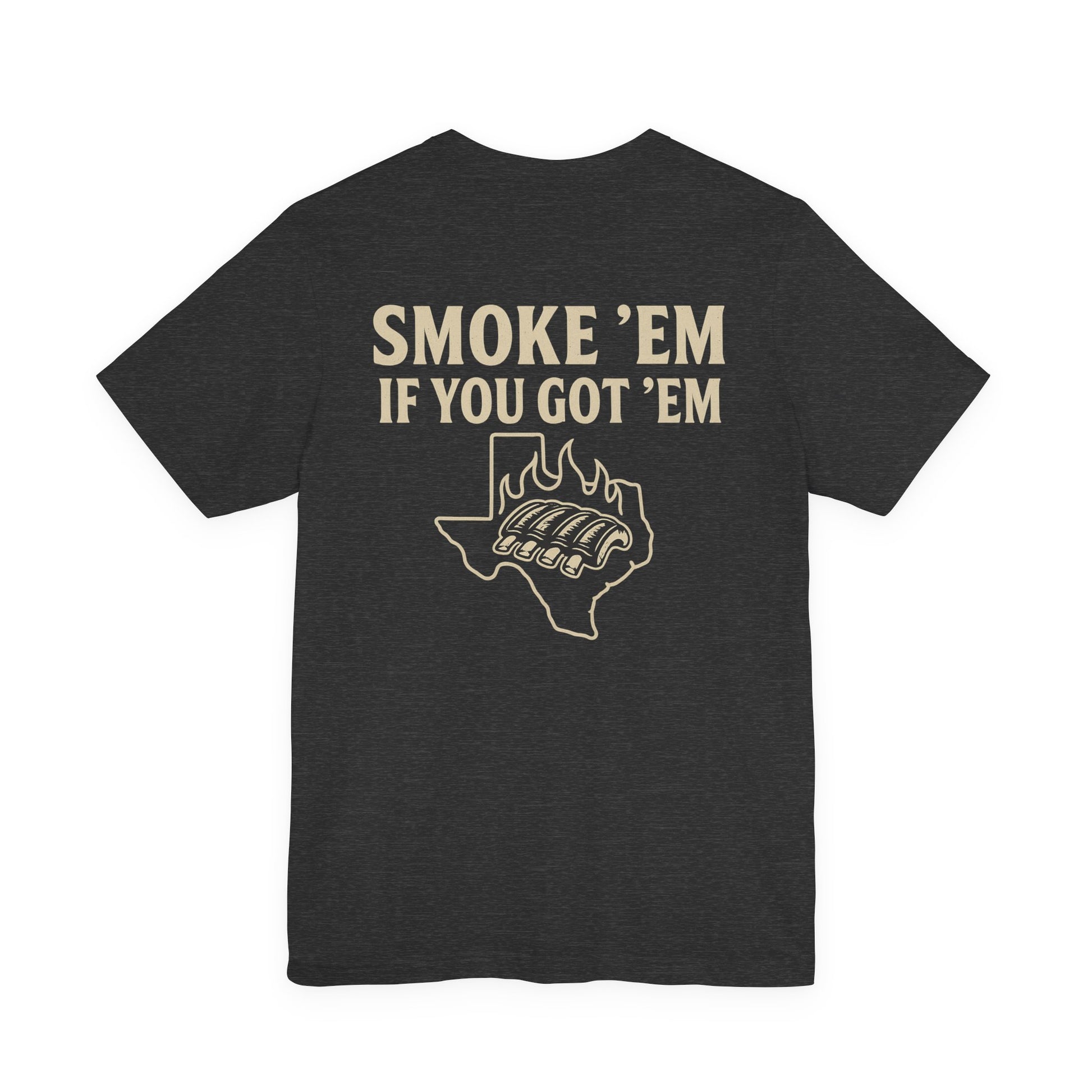 This is the unofficial motto of every serious pitmaster. Our "Smoke 'Em If You Got 'Em" tee is a tribute to the passion, patience, and tradition of Texas BBQ, especially when those racks of ribs are ready for the smoke!