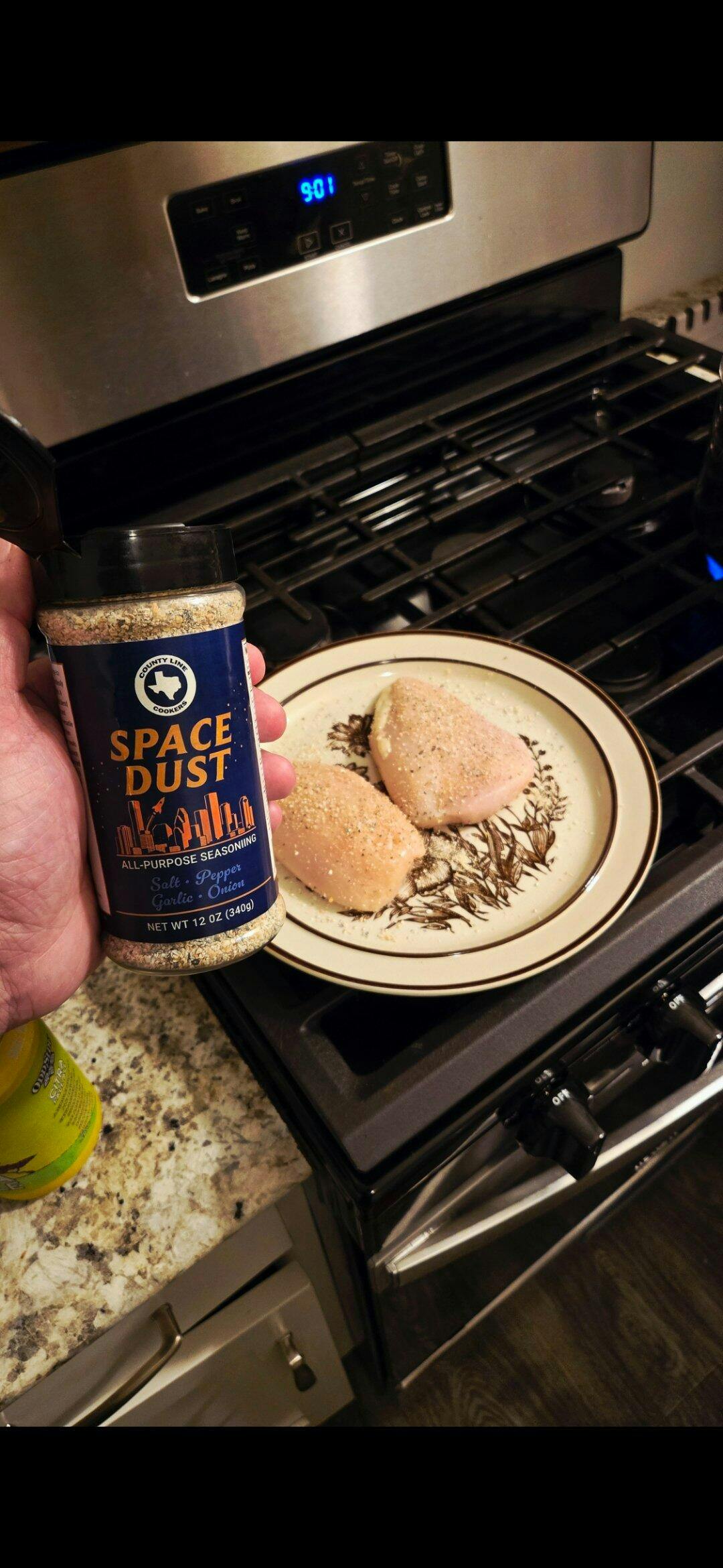 This seasoning is delicious and can be applied to damn near anything. Made a seared chicken pasta with the chicken coated in Space Dust. Simply delicious. Will buy again.