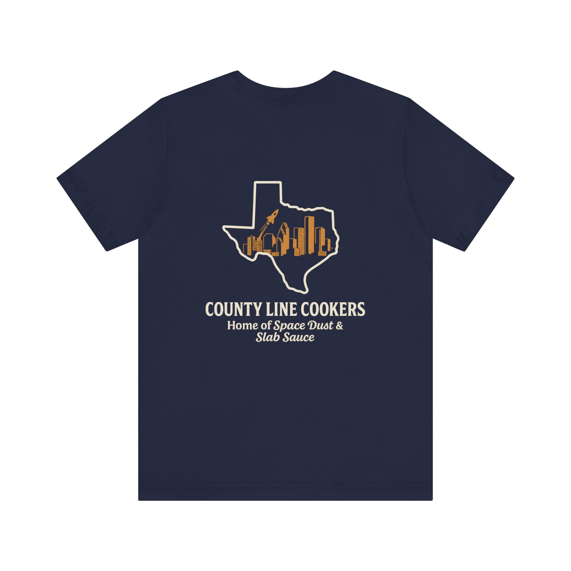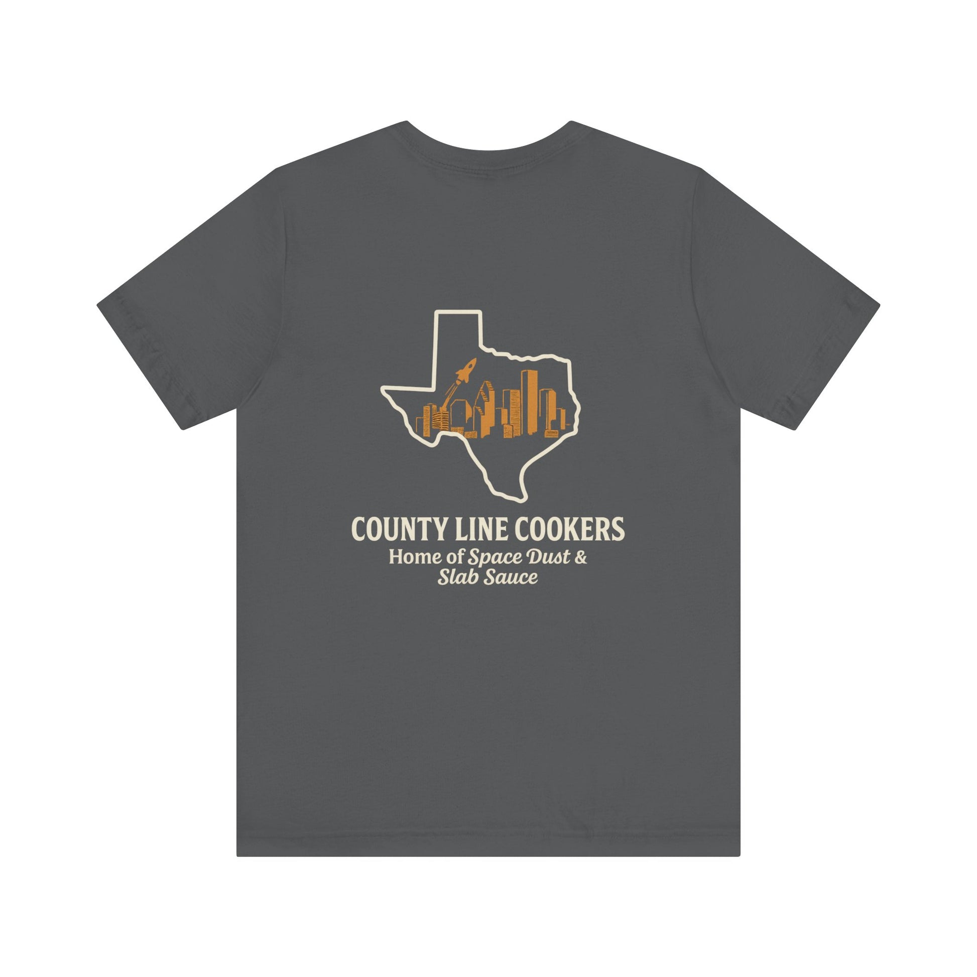 It's more than just a shirt; it's a declaration: COUNTY LINE COOKERS: Home of Space Dust & Slab Sauce.